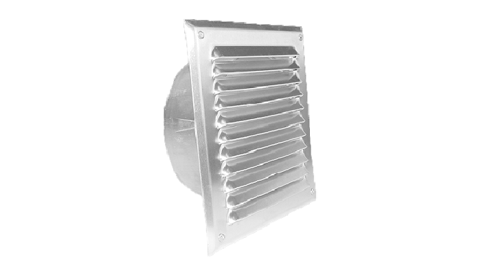 Wetterschutzgitter gepresst, mit Fliegengitter und Stutzen.