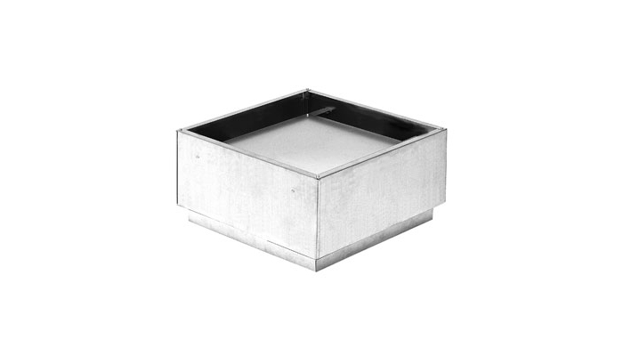 Rechteckige Dachhaube für Aussenluft und Abluft. HRR ist für die Positionierung über dem Aussendach auf dem Dach durch den Anschluss vorgesehen.
