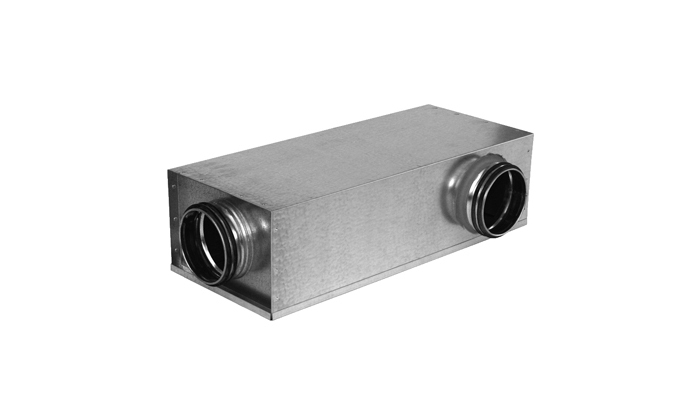 Aufgrund seiner Abmessungen eignet sich der Schalldämpfer für die Installation über abgehängten Decken oder bei begrenztem Einbauraum.